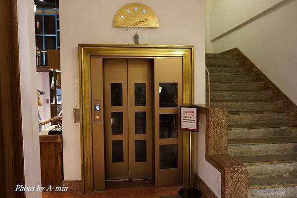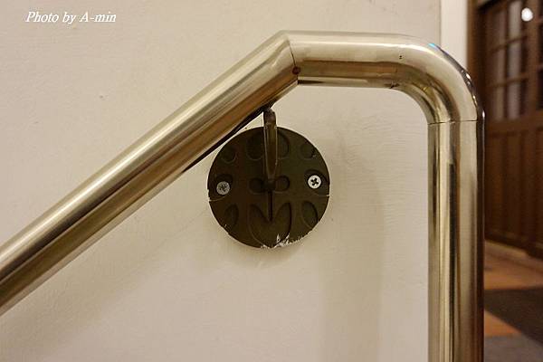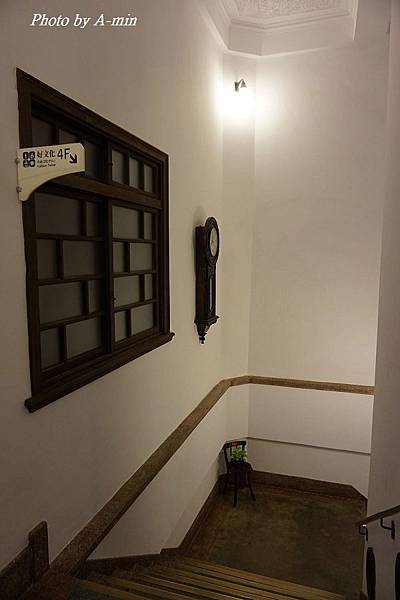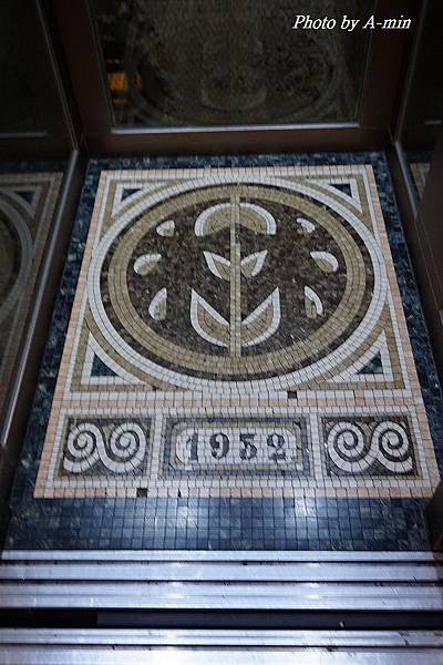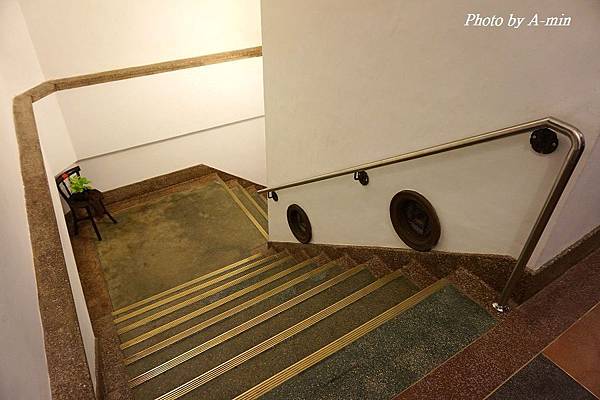 樓梯的內側牆壁.就是電梯牆.扶手.階梯的止滑銅條.磨石子地板.都很古意~