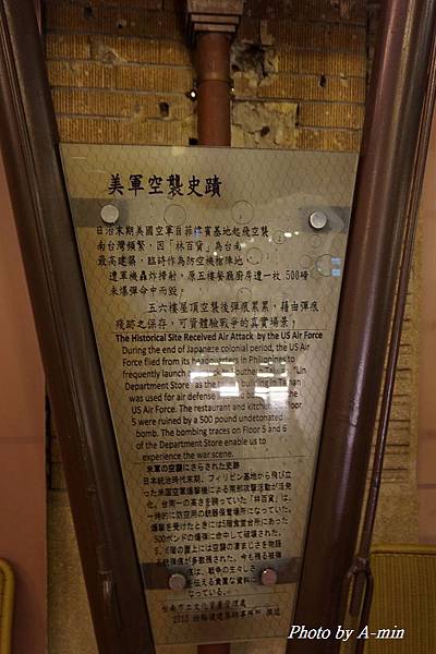 梯廳對面這片牆.是原來的廚房.當年被美軍飛機轟炸.還有許多彈痕留著.