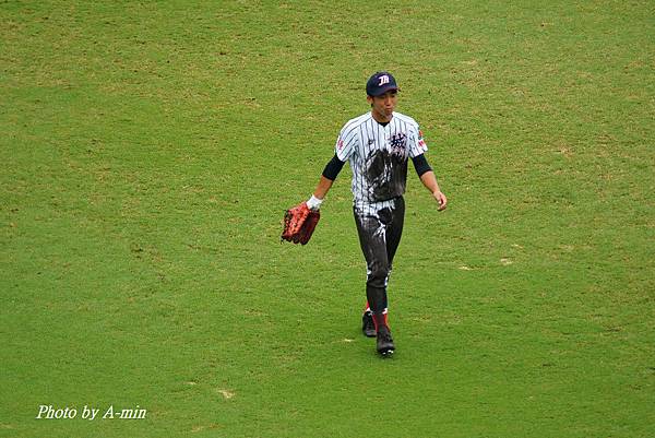 滿身泥濘的右外野手..這是剛才跑壘時撲壘的結果..