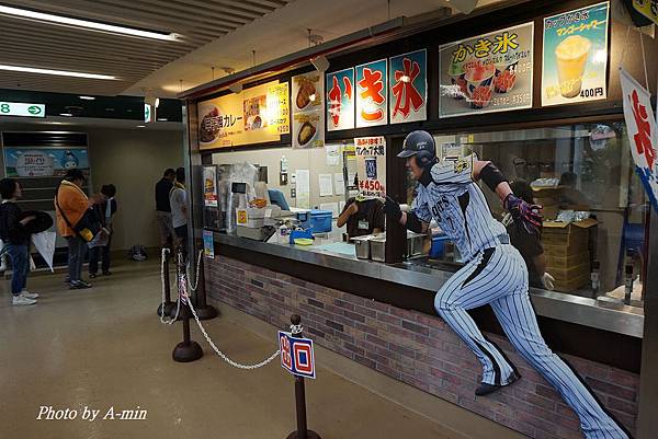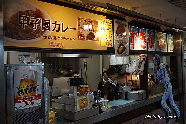 來到觀眾席後方的室內走廊.有販賣部在賣咖哩飯..