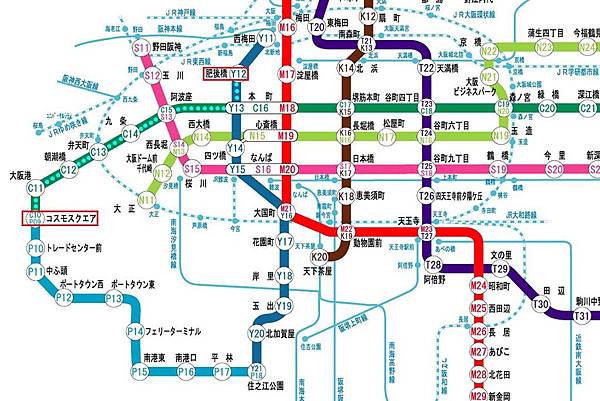 從肥後橋搭地鐵到宇宙廣場(Cosmosquare)