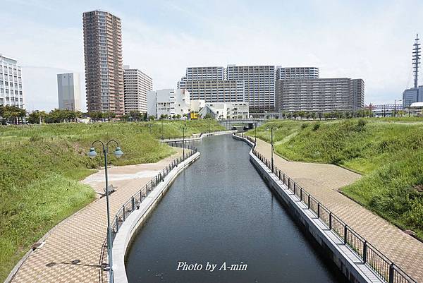 經過一條排水道.兩岸邊的斜草坡應該有堤防的功用.