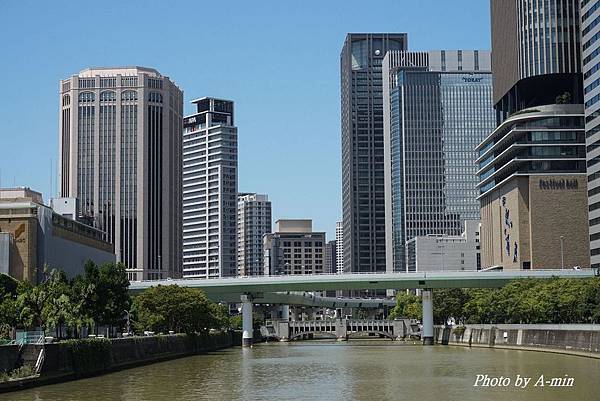 從淀屋橋上往西看..從左邊第二棟高樓.就是這次住的APA旅館.