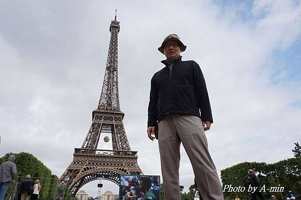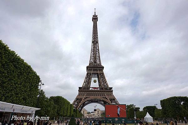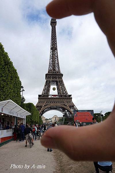 鐵塔前的草坪 (戰神廣場) 正架起大銀幕.實況轉播法網賽~