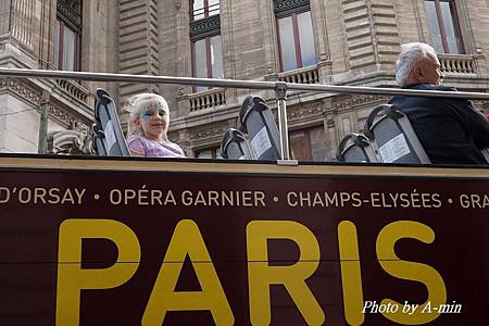 在馬路上遇見遊覽巴士上的彩妝小女孩..
