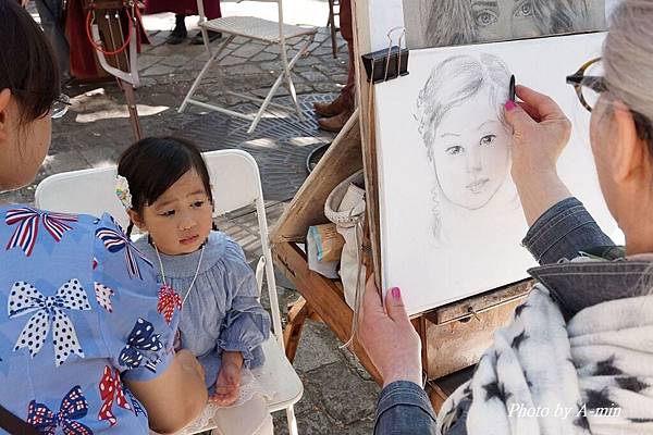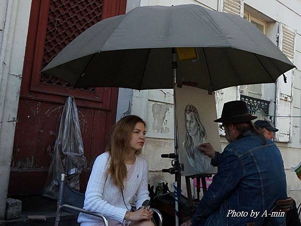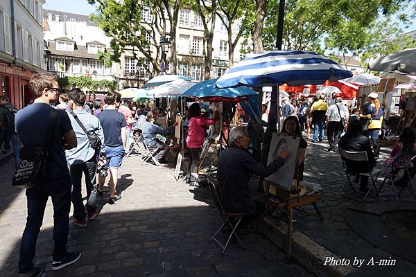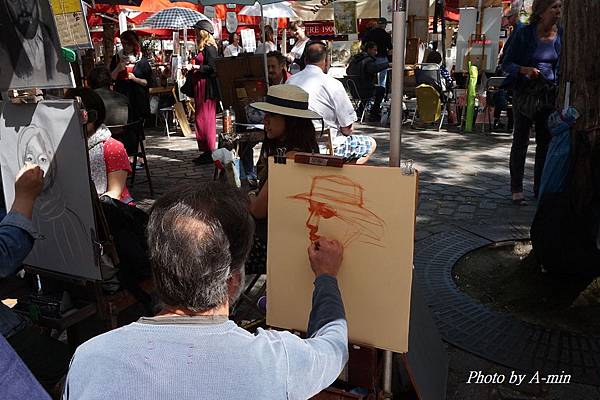 有很多畫家在這邊擺攤賣畫.或是幫人畫寫生..