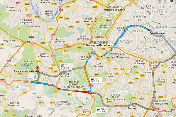 從巴黎市中心的第六區到位於巴黎西郊約50分鐘的車程.