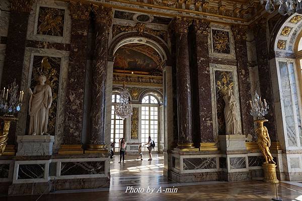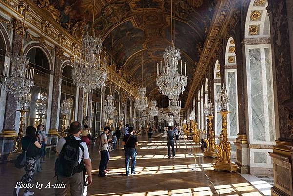 當然..牆面的石材和金光閃閃的窗框是路易十四時才加上去的~