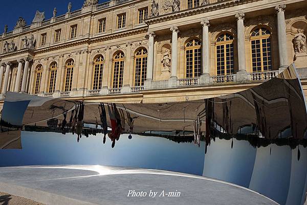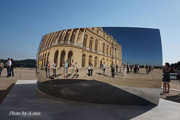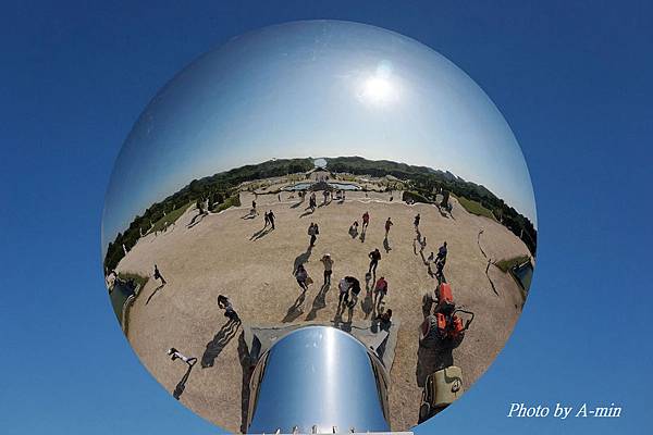 在大噴水池的末端.放置了一座大凸鏡.映出廣闊的庭園..