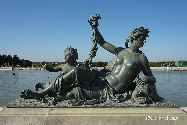 緊接著後方的大噴水池畔.有許多精美的銅鑄雕像~