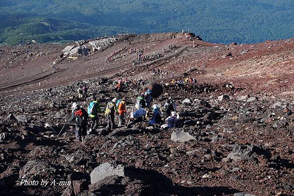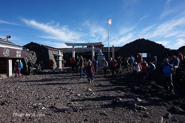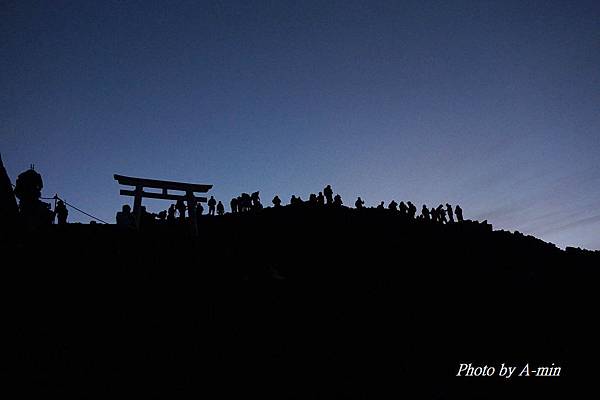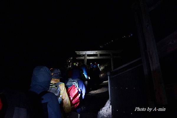 到了九合目.隊伍緩慢地通過鳥居..有點塞車了.