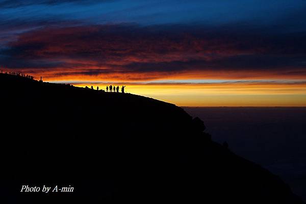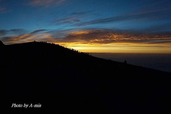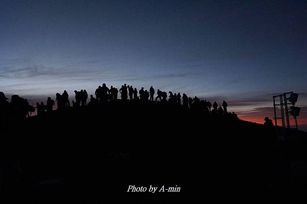 山頂的小山丘.亂岩石堆上.到處都站滿等待日出的人..