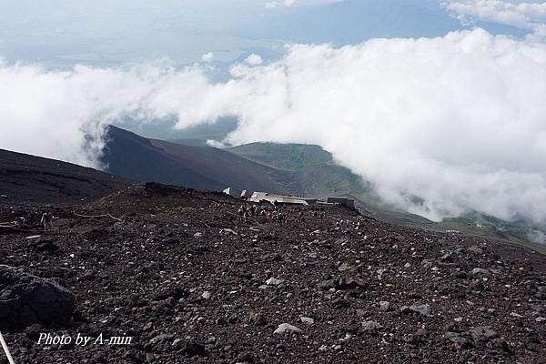 8:00 走了一小時多.看得見昨晚住宿的池田館了(八合目)