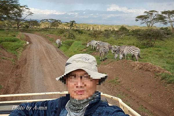 第一次看到一小群斑馬.很興奮的跟牠們合拍..