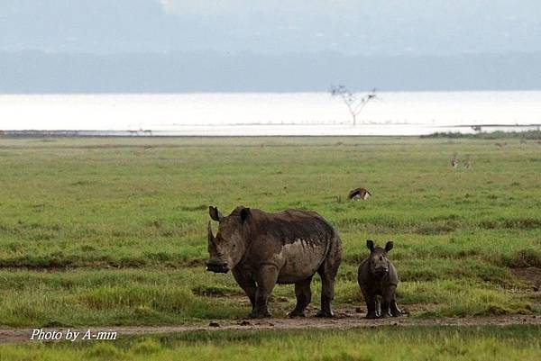 在湖邊發現白犀牛母子 (White Rhino)