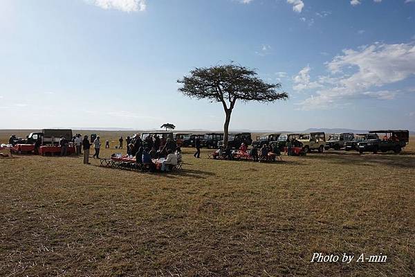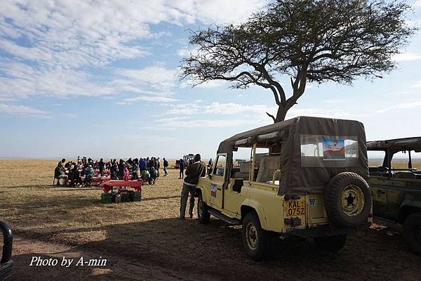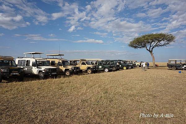 除了熱氣球公司的車.我們的獵遊車也來了.