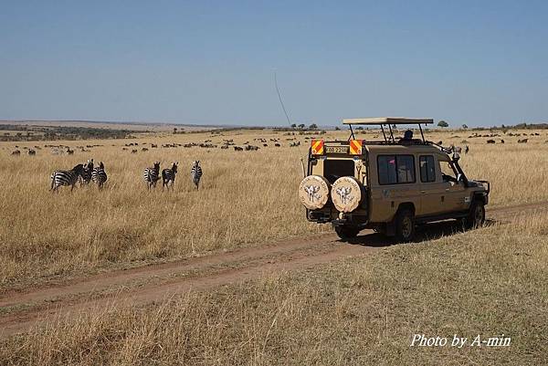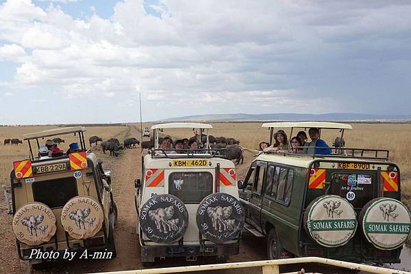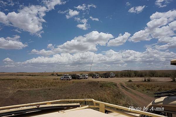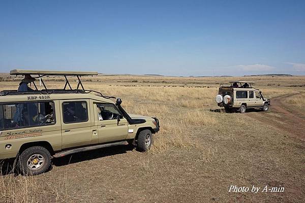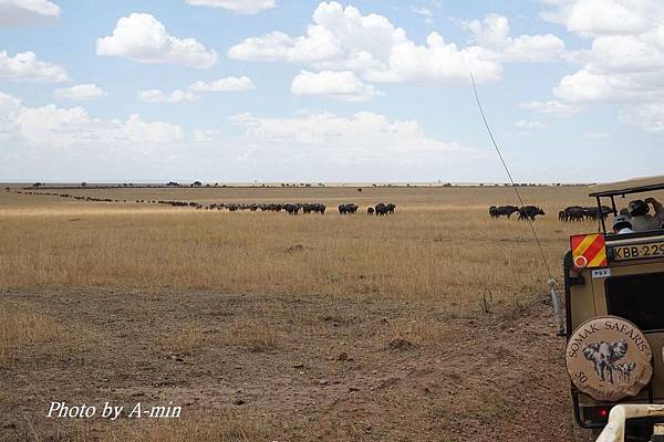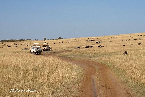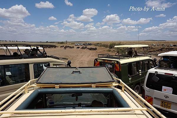 獵遊車越來越多.牛羚群更顯得騷動不安..