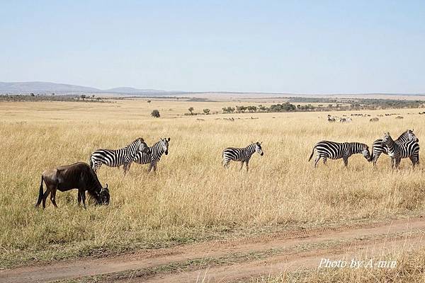 斑馬後面更遠一點有一排樹叢就是河邊了..