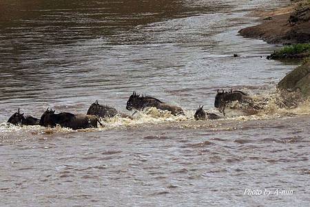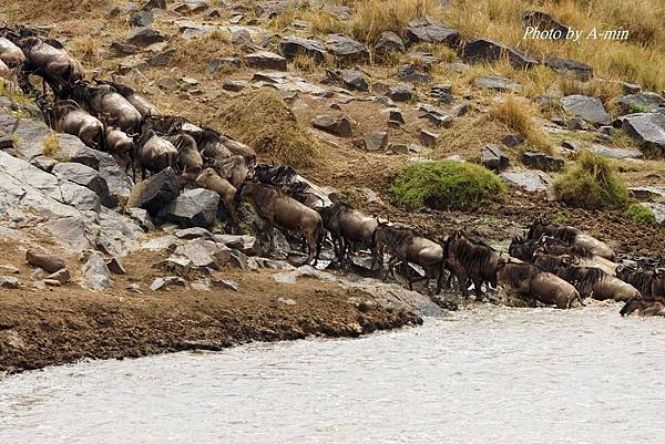 牛羚群又跑回河邊..但是沒有要渡河的跡象..