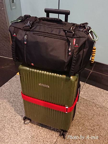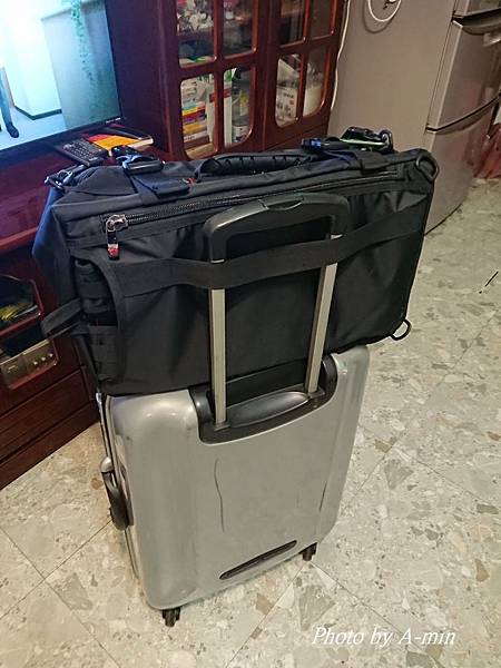這背包放在26吋行李箱上..