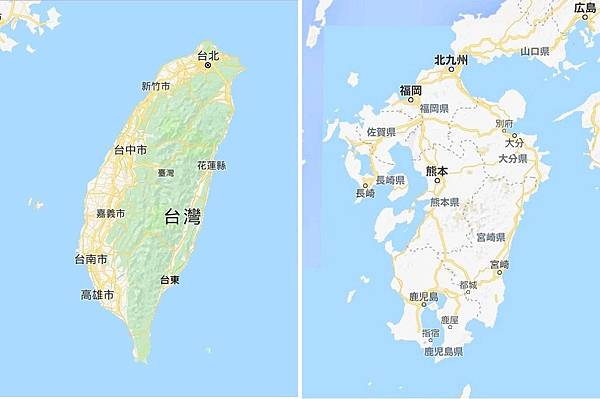 九州跟台灣大小很相似.