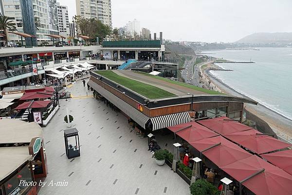 右邊屋頂上有人工草皮這棟.就是餐廳.