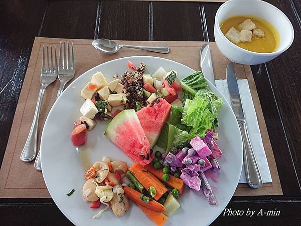 生菜沙拉和西瓜、還有一碗南瓜湯.