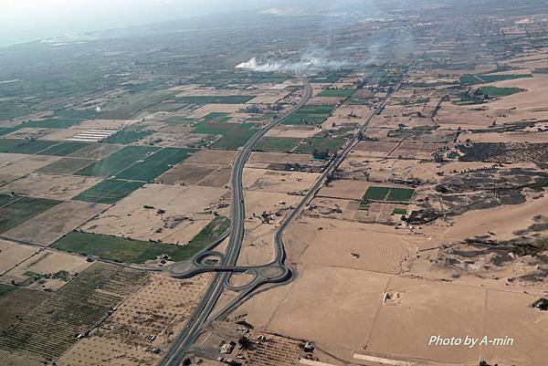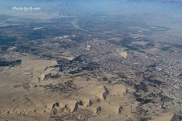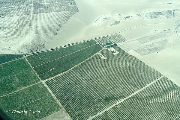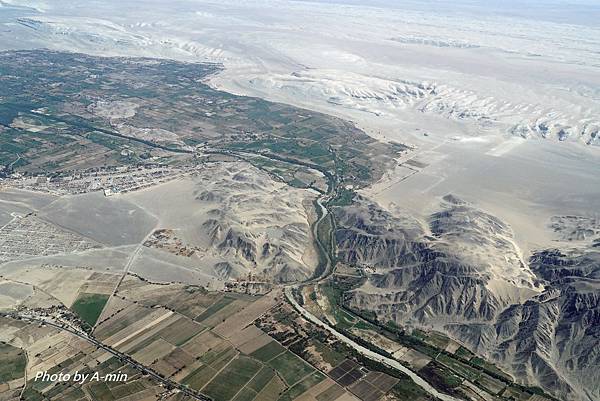 ↓河邊的農田和沙漠的對比.
