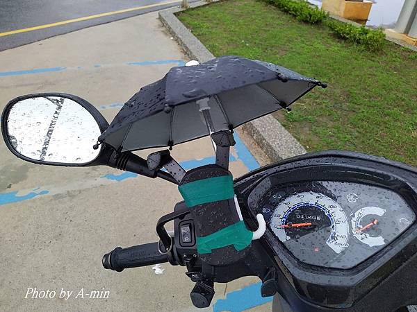 同一條路上的在地人.停下機車開始穿上雨衣..