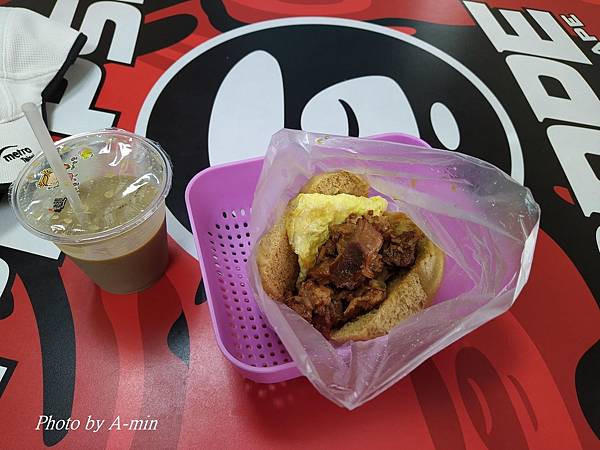 吃起來頗有飽足感.搭配的飲料是微甜的豆漿紅茶.