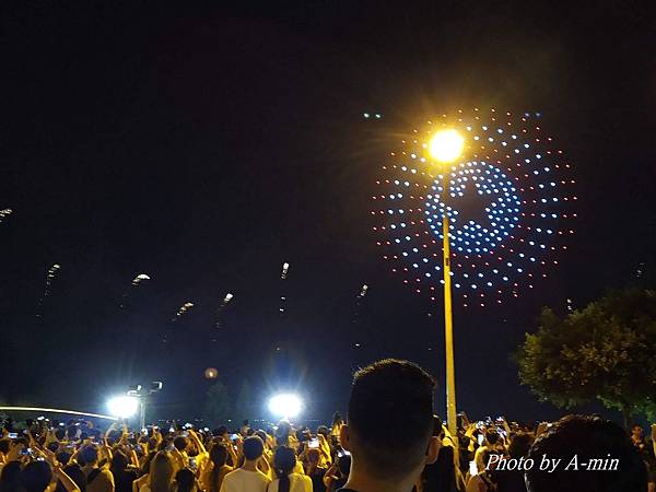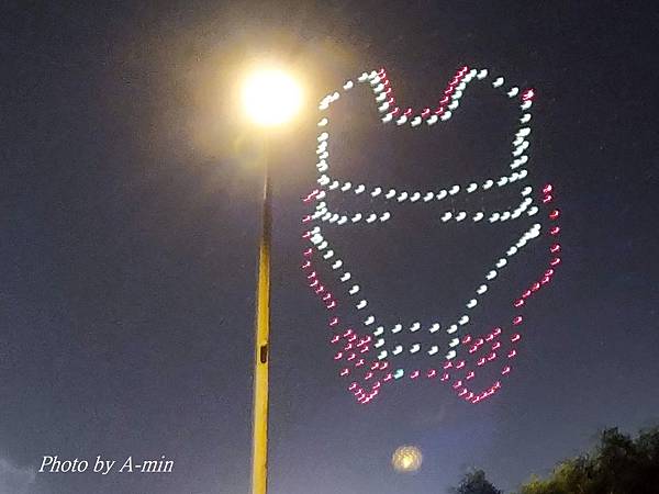 雖然路燈的光有點礙眼.基本上無人機表演還是看得清楚.