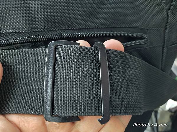 走了一會兒.發現我隨身背包一個調整背帶長度的扣環斷了.