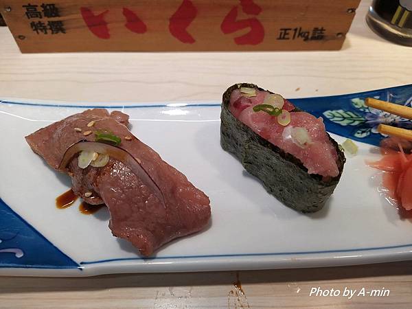 追加炙燒牛小排握壽司蔥花鮪魚軍艦各一.共80元