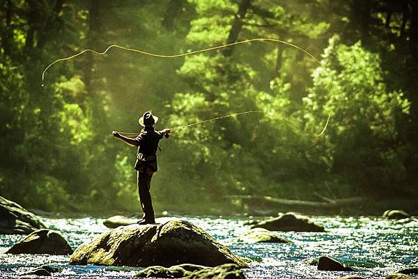 用像是揮舞皮鞭的方式增加動能.把毛鈎餌投得更遠、更準.