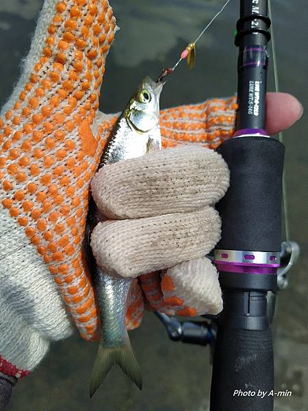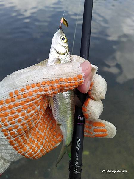 一開始.使用1號毛鈎釣著..有看到小魚追.但是沒有咬訊.