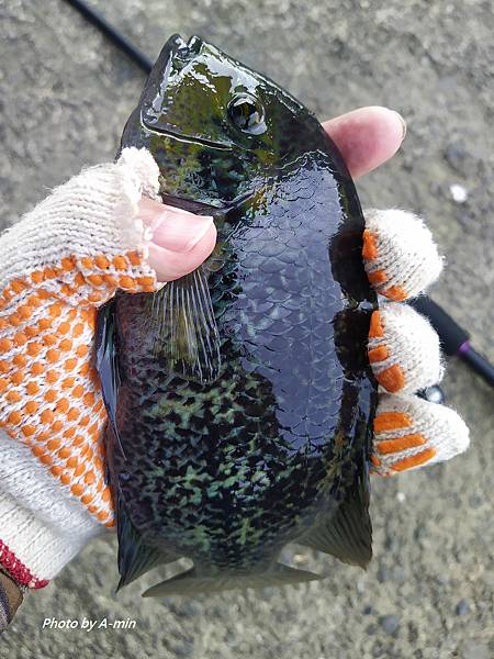 費了點力才將它拉上岸..也是火口魚.