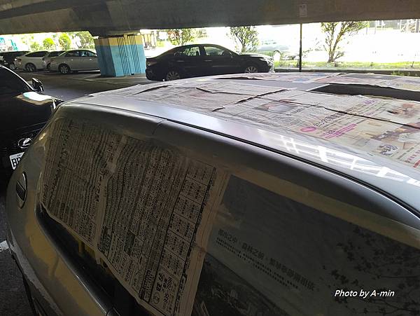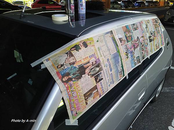 看漆面大致乾一些就拆掉遮蔽的報紙先把車開走.