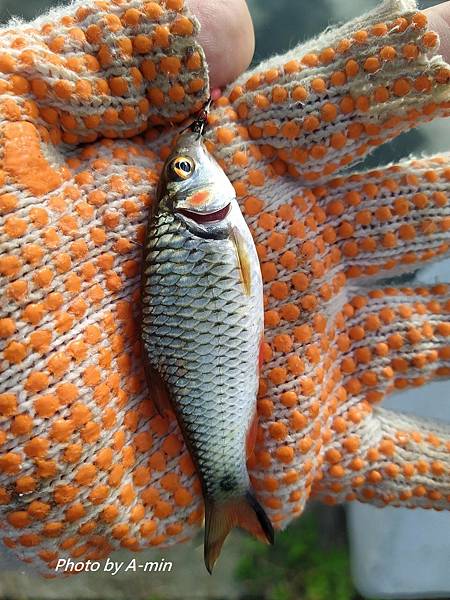 這次用的是瓜子亮片+紅鈎+一截軟蟲假餌.