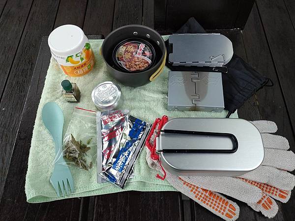 還有米、罐頭、味增湯包以及用來煮湯的鋼杯.