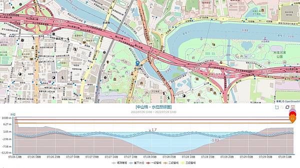 ↓中山橋_滿潮水位1.7m,低潮水位-1.01,河床深-12m