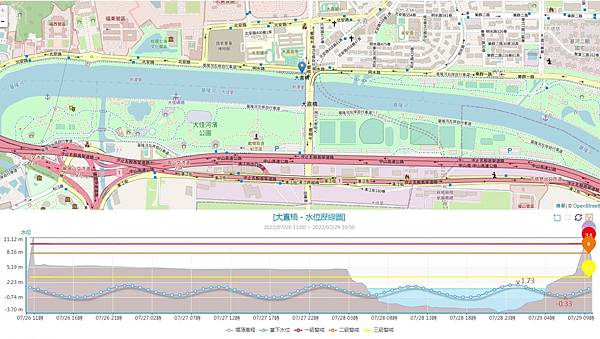 ↓大直橋_滿潮水位1.73m,低潮水位-0.33,河床深-3.7m