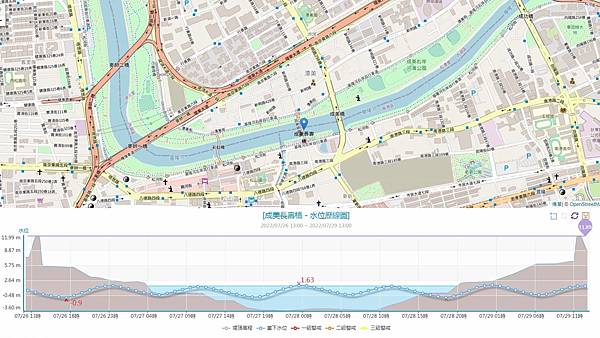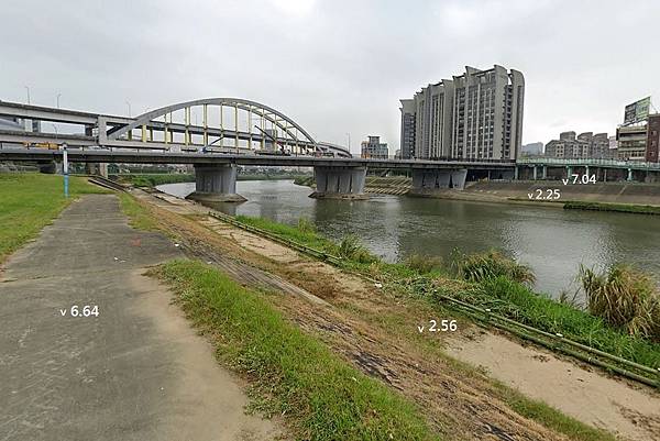 ↓成美長壽橋_滿潮水位1.63m,低潮水位-0.9,河床深-3.6m