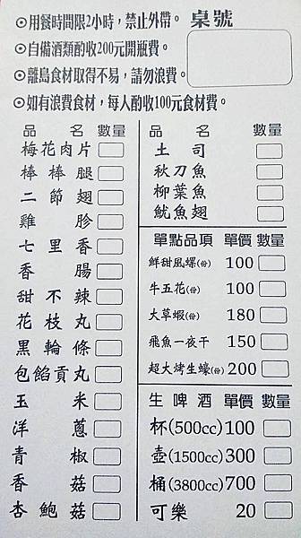 店裡的菜單長這樣…