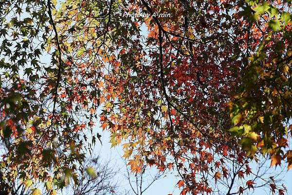 仰頭看是正要轉紅的楓葉.