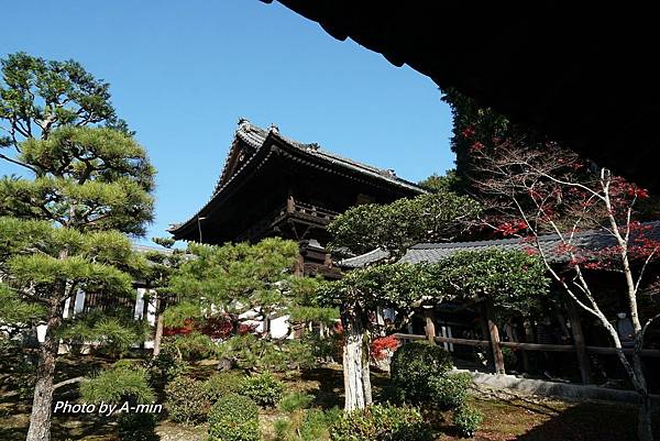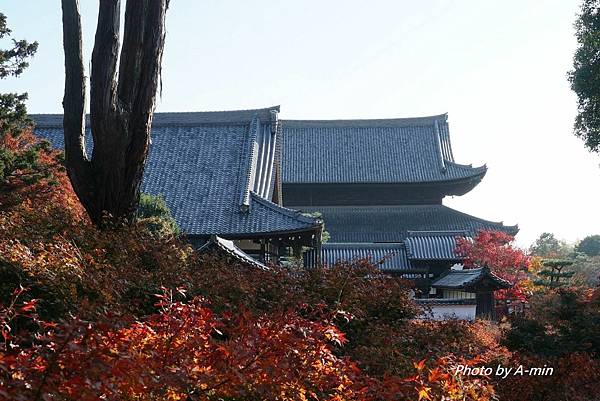 層層的楓葉遠方是櫛比鱗次的寺院屋頂.