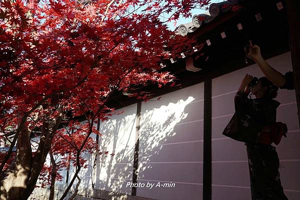 看到有日本妹穿和服襯著紅葉.趕快按下快門.