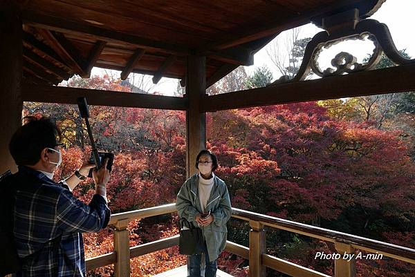 看到一位阿桑在拍紅葉.