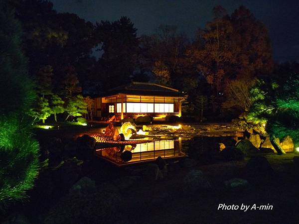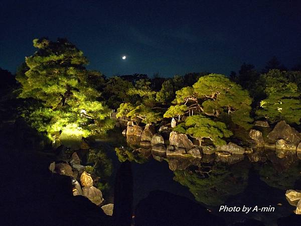 欣賞過光雕秀往北穿過鳴子門往北側的庭園(清流園)