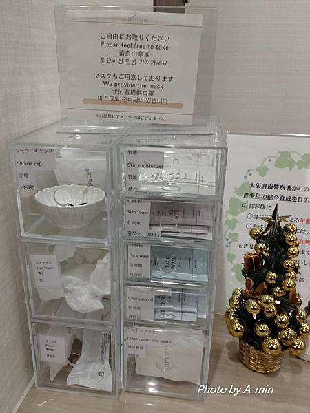 旅館大廳裡還有提供化妝棉、乳液、梳子、刮鬍刀...等讓客人自取.