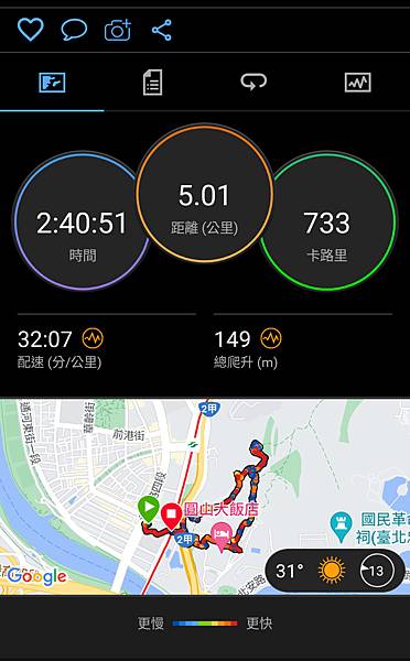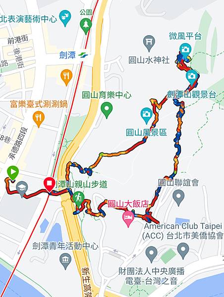 從中山北路到這邊.大約爬升了50公尺(將近17層樓)